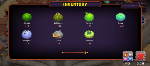 必要な卵の種類は、植物の島のモンスターということで、とても覚えやすいです。しかしながら数が多いので、時間がかかります。中でもエントブラットの卵を5個も要求されることには驚きと落胆のため息が出ます。レアエントブラットをもたない人にはずいぶん難しい戦いになりそうですね。エントブラットをブリーディングしたい時にどの組み合わせが最適かはわかりませんが、1属性モンスター×3属性モンスターの組み合わせでは4通りのやり方があります。(※2属性モンスター×2属性モンスター の組み合わせは、1属性モンスター×3属性モンスターよりも上手くいく確率が低い、というのはどこかで記述されていました。)どの組み合わせを選んでも、産まれた卵は植物の島のモンスターであれば電撃することができるので、孵化器が埋まってしまうことは避けられます。その点を注意して、ブリーディングの組み合わせを調整すると良いと思います。