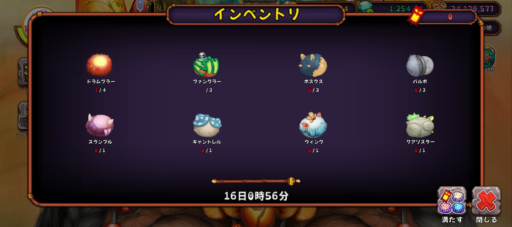 ①植物の島でティラノロックス、風の島でポンポン、水の島でシュラブ、地の島でクアリスター、炎の楽園でケイナ、炎のオアシスでウィンク、光の島でバルボ、超能力の島でファングラー、妖精の島でキャントレル、骨の島でスランブルをブリーディング。