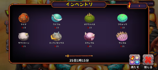 それから、これはいつも書いているので蛇足と感じる方もいらっしゃるかもしれませんが、プリンカジューとグロプティックの卵を求めるなら、プリンカジュー×フウォッグ、グロプティック×オアクトパスの組み合わせが高確率です。もちろん、レア種をもっているならレア種を利用しない手はありませんが。スナイザーの卵は、スナイザー×ファングラーの組み合わせによって、高確率で入手できます。
