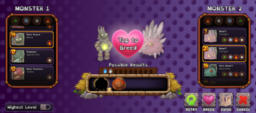 えー!ブリーディングできるの知らなかった!以前、読者の方に、「ポンピンの卵の影を見た」ってコメントをいただいた時、ポンピンはブリーディングできないって答えてしまった!本当に申し訳ありませんでした!エピックポンピンはプラディとフフートフライでブリーディング可能みたいです!その他のモンスターも調べてみます!本当にすみません!!